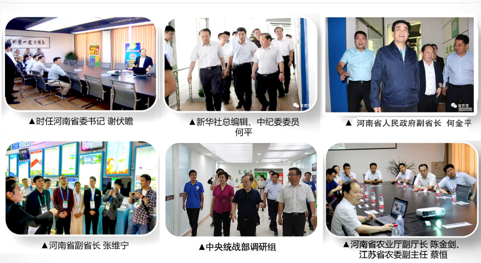 支農(nóng)寶的發(fā)展得到各級領(lǐng)導(dǎo)的關(guān)心和支持。時任河南省委書記謝伏瞻,河南省副省長何金平,新華社總編、中紀委委員何平,國家發(fā)改委調(diào)研組,河南省政協(xié)副主席、工商聯(lián)主席梁靜,團省委書記王藝,全國青聯(lián)主席李榮,中央統(tǒng)戰(zhàn)部調(diào)研組,市委、市政府和睢陽區(qū)委區(qū)政府主要領(lǐng)導(dǎo)等都曾蒞臨支農(nóng)寶調(diào)研,并給予很高的評價。